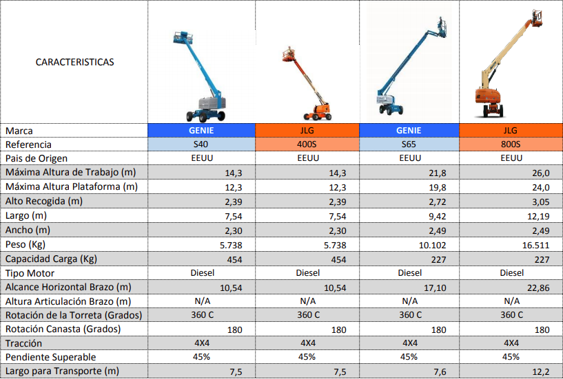 Las plataformas articuladas sobre oruga presenta grandes ventajas ya que por su peso liviano y gran altura es ideal para todo tipo de trabajo.
