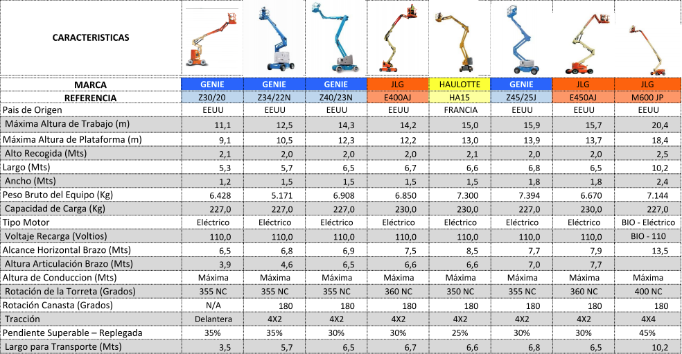 Las plataformas articuladas sobre oruga presenta grandes ventajas ya que por su peso liviano y gran altura es ideal para todo tipo de trabajo.