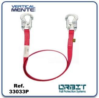 Eslinga de detención de caídas sencilla, fabricada en reata tubular con sistema interno de absorción con gancho dieléctrico de 65mm de apertura. Norma ANSI Z359.3-2017