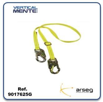 Eslinga de posición y restricción sencilla fabricada en cuerda de 13 mm, tiene dos ganchos de doble accionamiento, apertura de 20 mm. Norma ANSI Z359.3-2017