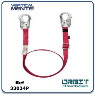 Eslinga sencilla de posición y restricción sencilla, fabricada en reata de poliéster con hebilla de regulación, tiene dos ganchos de apertura de 20mm. Norma ANSI Z359.3-2017
