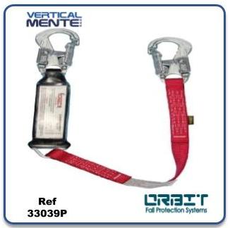 El absorbedor de energía esta diseñado para amortiguar y reducir la fuerza del impacto producida en la detención. Reata poliéster de 25 mm de ancho, fuerza Máxima de detención 1800lb (8kN) y una elongación Máxima 1,06 m.