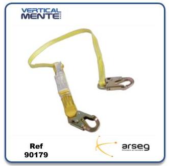El absorbedor de energía esta diseñado para amortiguar y reducir la fuerza del impacto producida en la detención. Reata poliéster de 25 mm de ancho, fuerza Máxima de detención 1800lb (8kN) y una elongación Máxima 1,06 m.