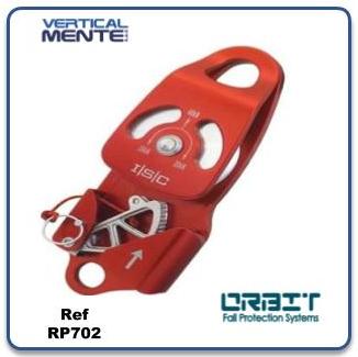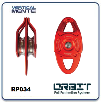 Polea doble RP034 para cuerda de 10 mm a 14 mm o cable de 1/2 - 3/8, con una resistencia de 40 kN y un peso de 965 gr, la cual le permite un desplazamiento vertical en ambos sentidos, cuenta con sistema de eje grafado que garantiza la seguridad de la polea y la resistencia al levantamiento de carga.