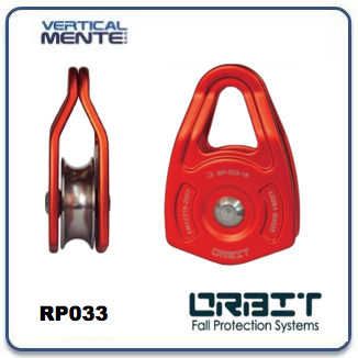 Polea sencilla RP033 para cuerda de 10 mm a 14 mm o cable de 1/2 - 3/8, con una resistencia de 30 kN y posee un peso aprox. de 514 gr, la cual le permite un desplazamiento vertical en ambos sentidos, cuenta con sistema de eje grafado que garantiza la seguridad de la polea y la resistencia al levantamiento de carga.