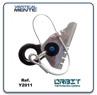 Freno Arrestador de caídas en aleación de acero de alta resistencia, funcional para cuerda de 11 mm a 16 mm, con ojo de 20 mm para conexión de eslinga o conector de cinta.